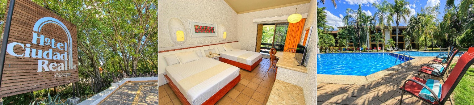 Viesnīca Ciudad Real atrodas 15 minūšu attālumā no senās Palenkes pilsētas lieliskajām drupām. Viesnīcā ir liels āra baseins, sauļošanās terase ar šūpuļtīkliem un 3 restorāniem, kas piedāvā starptautiskās virtuves ēdienus. Citas Real Palenque Viesnīcas interjers ir vienkārša koloniālā stila. Numuros ir gaisa kondicionieris, televizors un privātā vannas istaba ar fēnu un tualetes piederumiem. No numuriem skats uz dārzu vai baseinu. Bezmaksas bezvadu internets ir pieejams sabiedriskajās zonās visā viesnīcā. Viesnīca Ciudad Real Palenque atrodas pie Pacal-Na šosejas. Ir pieejama bezmaksas autostāvvieta. Palenkes centrs atrodas tikai 1,5 km attālumā, bet Viljahermosas starptautiskā lidosta – 130 km attālumā.