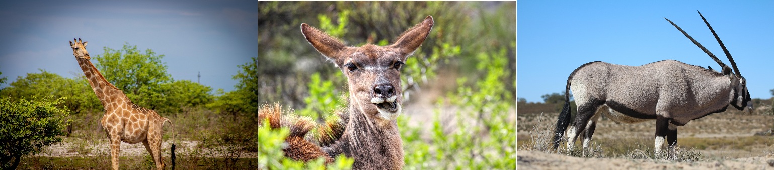 Во время нашего сафари на закате, которое на самом деле является сафари на природе, вы встретите, среди прочего, зебр, антилоп спрингбок, ориксов, хартебистов, блесбоков, куду, бородавочников, больших дроф и семейство жирафов.